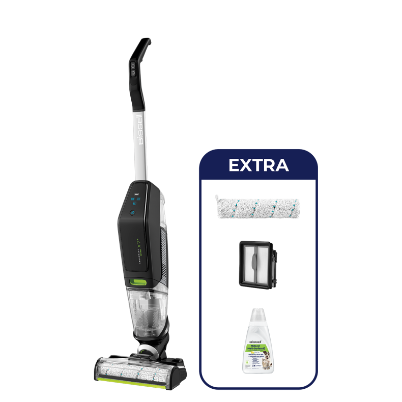 The BISSELL® CrossWave® X7 Plus Cordless Pet is the next generation Wet & Dry Cleaner for Homes with Pets. This powerful and lightweight device is the perfect solution for all your cleaning needs; from quick vacuuming to thorough wet cleaning. The durable 45000 RPM high performance digital motor provides strong suction. Up to 30 minutes of cordless freedom.*