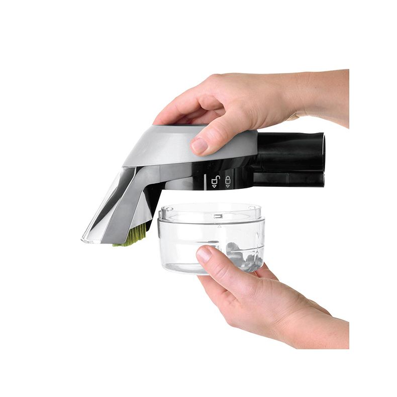- Debris are collected and stored in a separate, removable, container that twists off for easy emptying and disposal